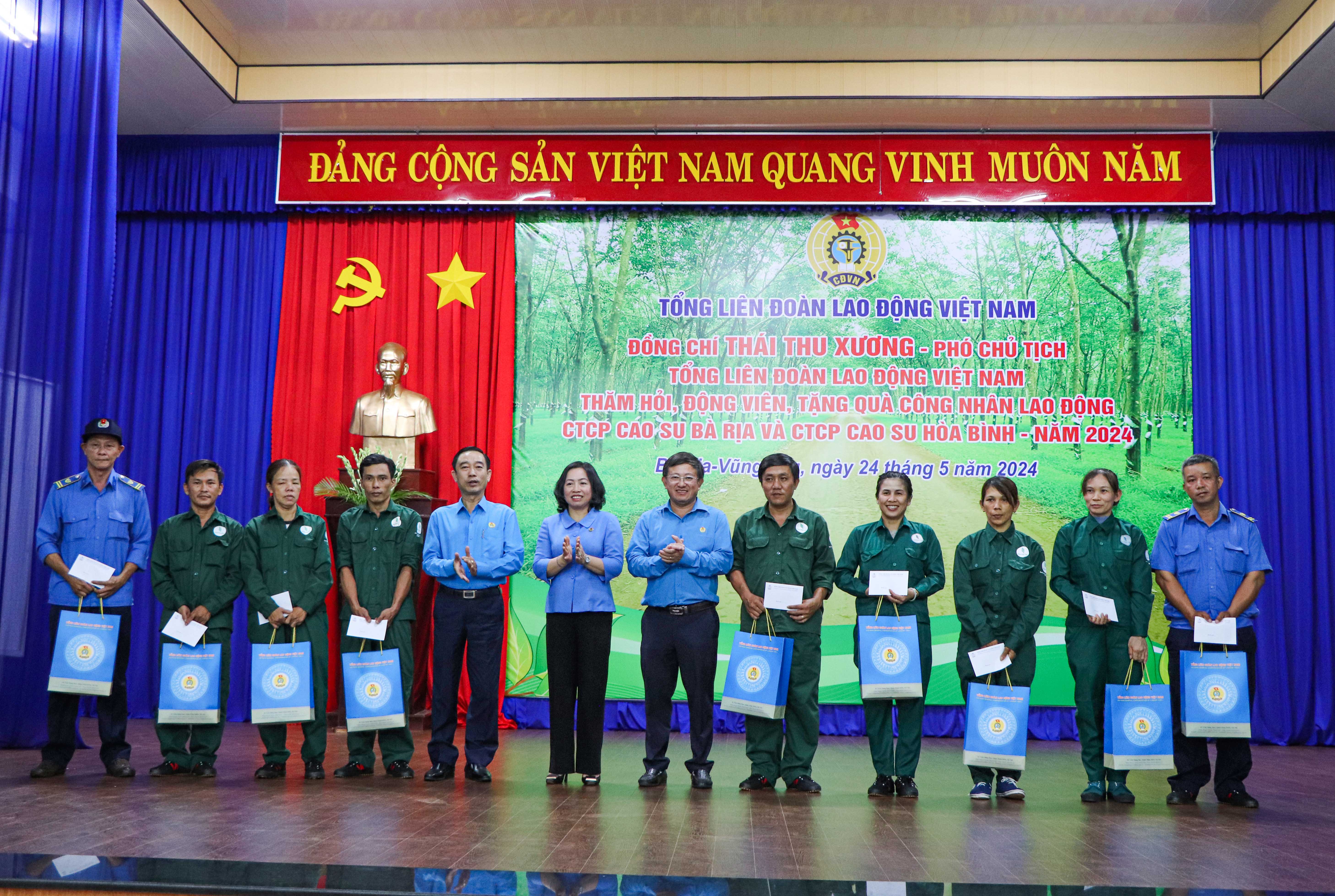 Bên cạnh những phần quà cho công nhân, Tổng LĐLĐ Việt Nam còn trao tặng quà cho Công đoàn Công ty CP Cao su Bà Rịa.