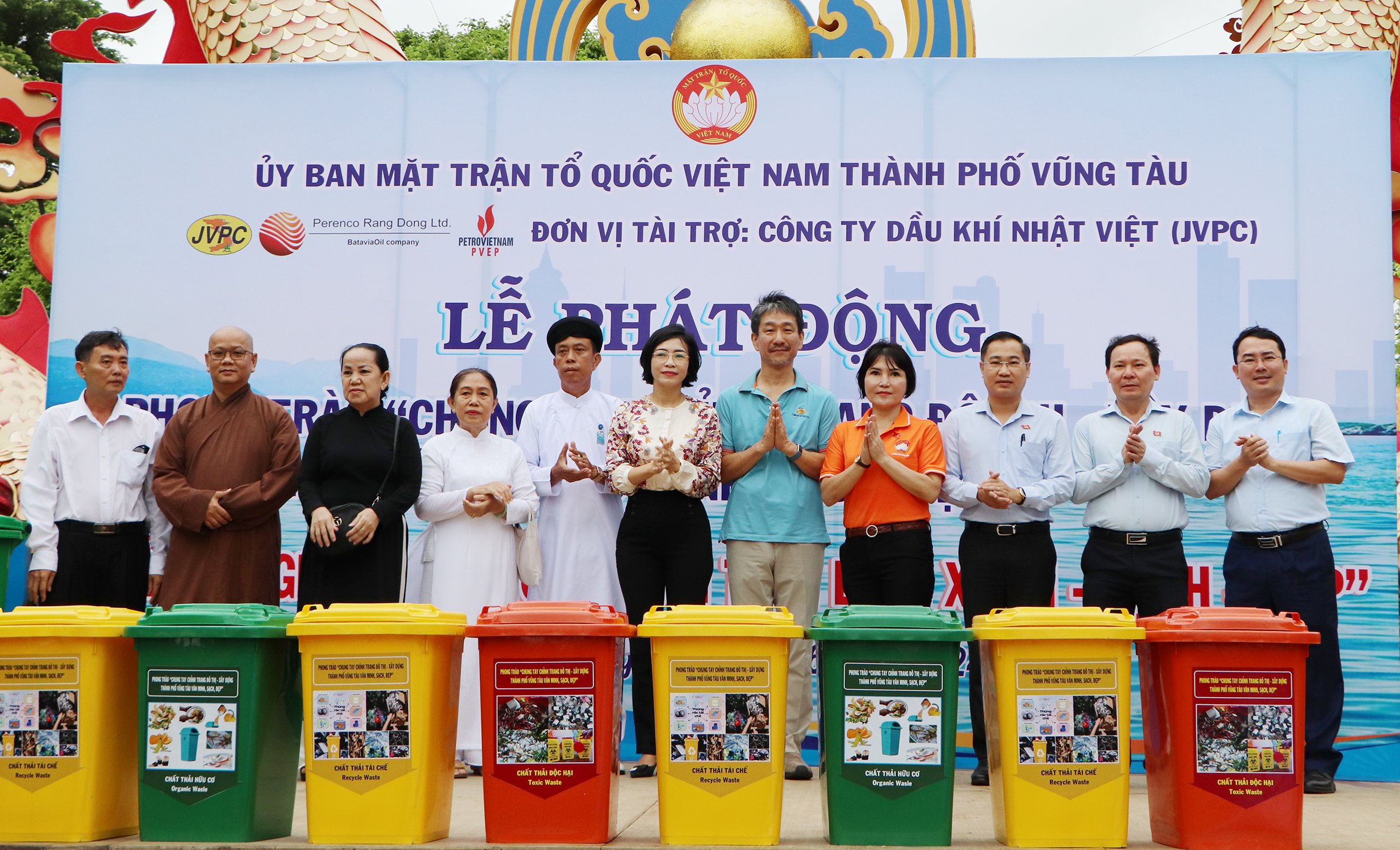 Tại lễ phát động, Công ty Dầu khí Nhật Việt (JVPC) đã trao tặng 130 thùng rác xanh, thùng phân loại rác thải và tiền mặt (tổng trị giá 150 triệu đồng).