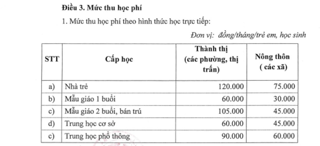 Mức thu cụ thể như sau: