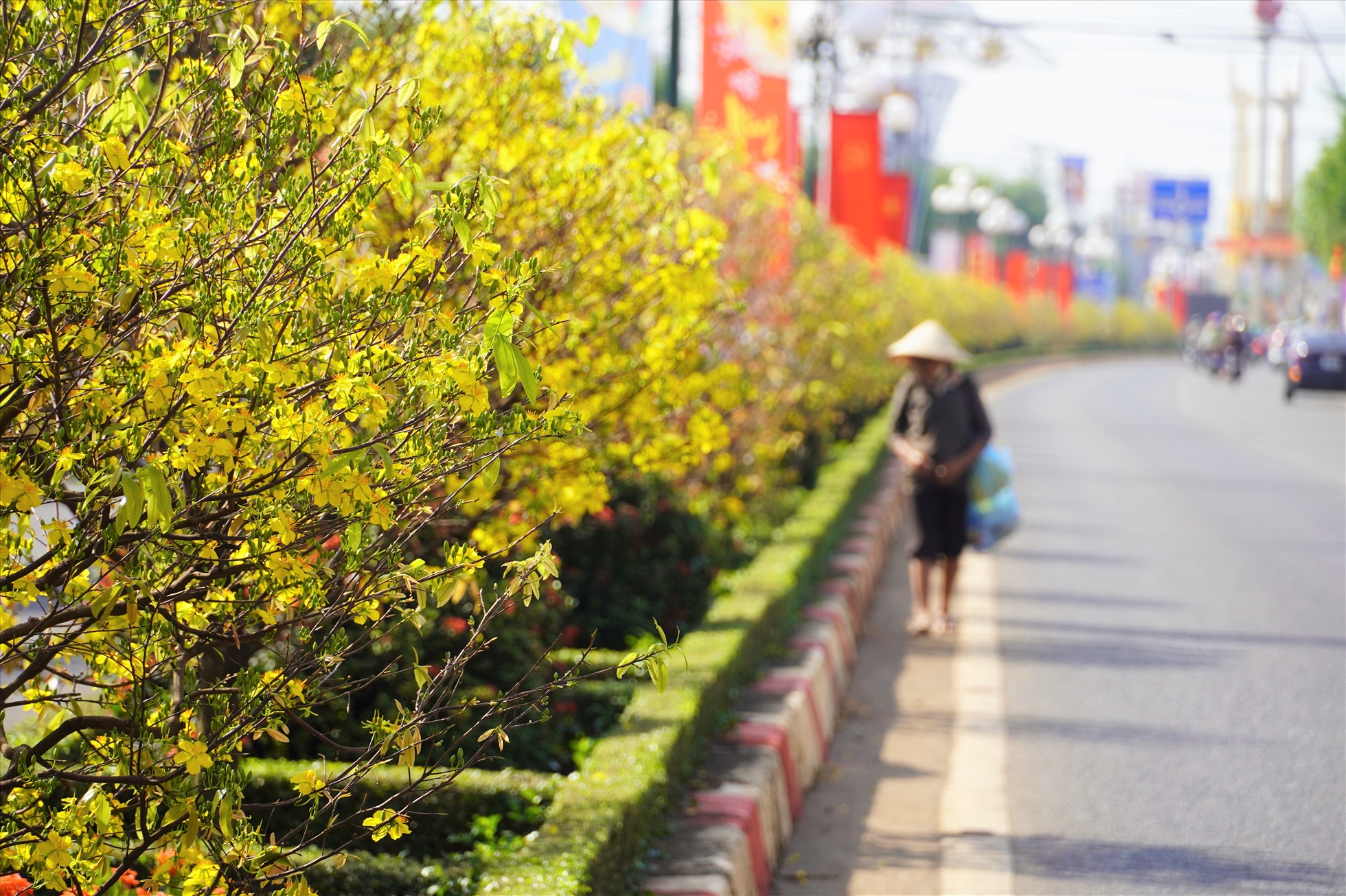 Các cây mai được lựa chọn và chăm sóc kỹ lưỡng, có hình dáng đẹp, độ tuổi trung bình từ 8 đến 10 tuổi, cao khoảng 2m. Các cây mai được lựa chọn kỹ lưỡng dựa trên các tiêu chí cây khoẻ, có hình dáng đẹp, có độ tuổi trung bình từ 8 đến 10 tuổi, chiều cao từ 1,4m đến 2m, trồng cách nhau khoảng 4-6m. Một số cây được quyên góp từ những cây đã được người dân sử dụng, sau đó giao cho một công ty chăm sóc, cắt tỉa, đảm bảo đúng dịp Tết đến, cây cho ra hoa vàng khắp tuyến đường.