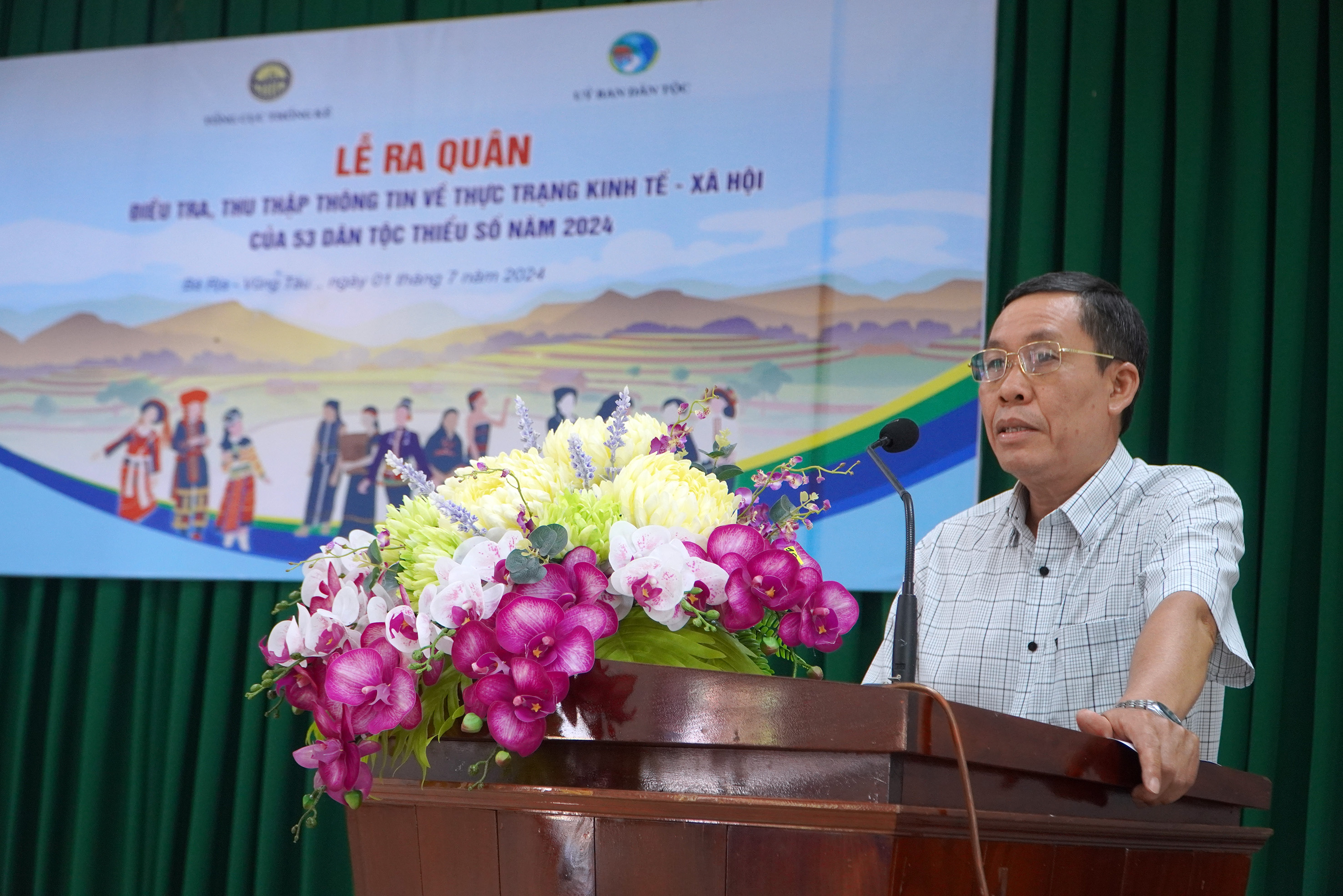 Phát biểu tại buổi lễ, ông Đoàn Quang Vinh, Phó Cục trưởng Cục Thống kê tỉnh cho biết, lễ ra quân nhằm tuyên truyền về mục đích, ý nghĩa, nội dung cơ bản của Điều tra, thu thập thông tin về thực trạng kinh tế - xã hội của 53 dân tộc thiểu số năm 2024; qua đó giúp người dân, đặc biệt là đồng bào vùng dân tộc thiểu số hiểu rõ về công tác dân tộc, sự quan tâm, đầu tư, chính sách phát triển kinh tế - xã hội các vùng dân tộc thiểu số của Đảng, Nhà nước...