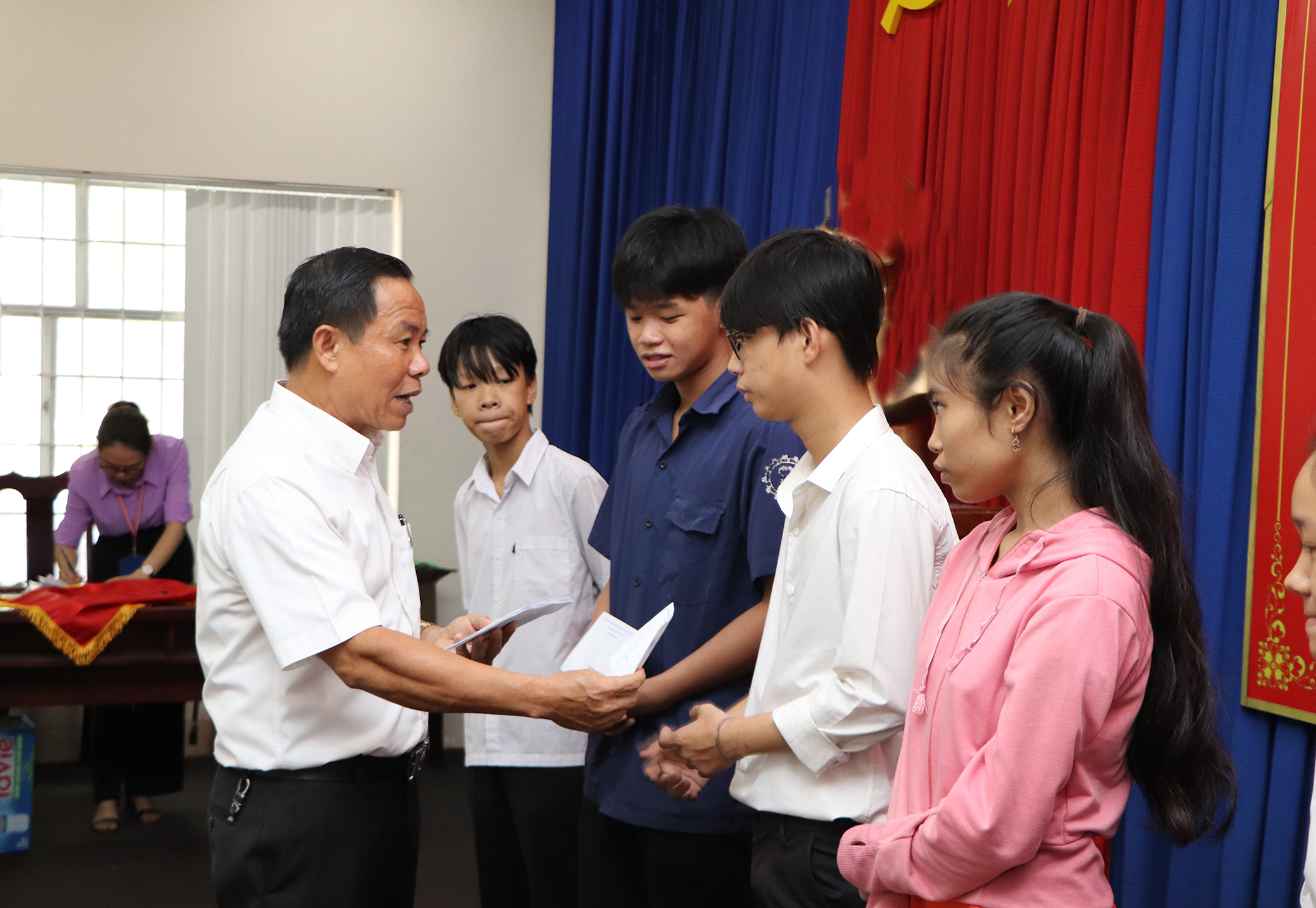 Cụ thể, MTTQ thị xã trao học bổng tới 8 SV (2 triệu đồng/suất), 9 HS THPT (1,5 triệu đồng/suất), 65 HS THCS (800.000 đồng/suất) và 69 HS TH (500.000 đồng/suất). Tổng trị giá 151 suất học bổng là 116 triệu đồng, trích từ Quỹ “Vì người nghèo” TX.Phú Mỹ.