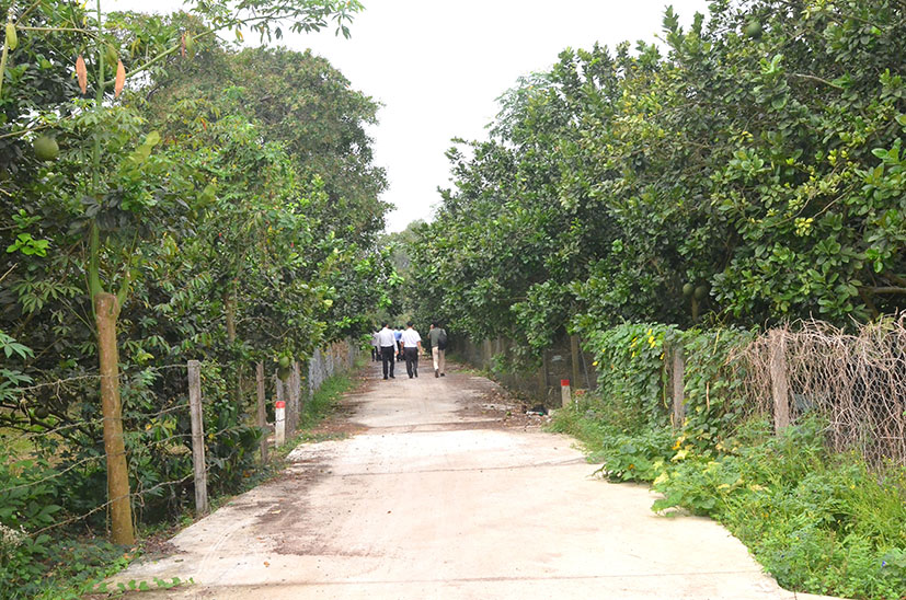 | Một con đường bê tông được Nhà nước đầu tư, giúp bà con ở xã Sông Xoài, TX.Phú Mỹ dễ dàng vận chuyển, buôn bán bưởi. |