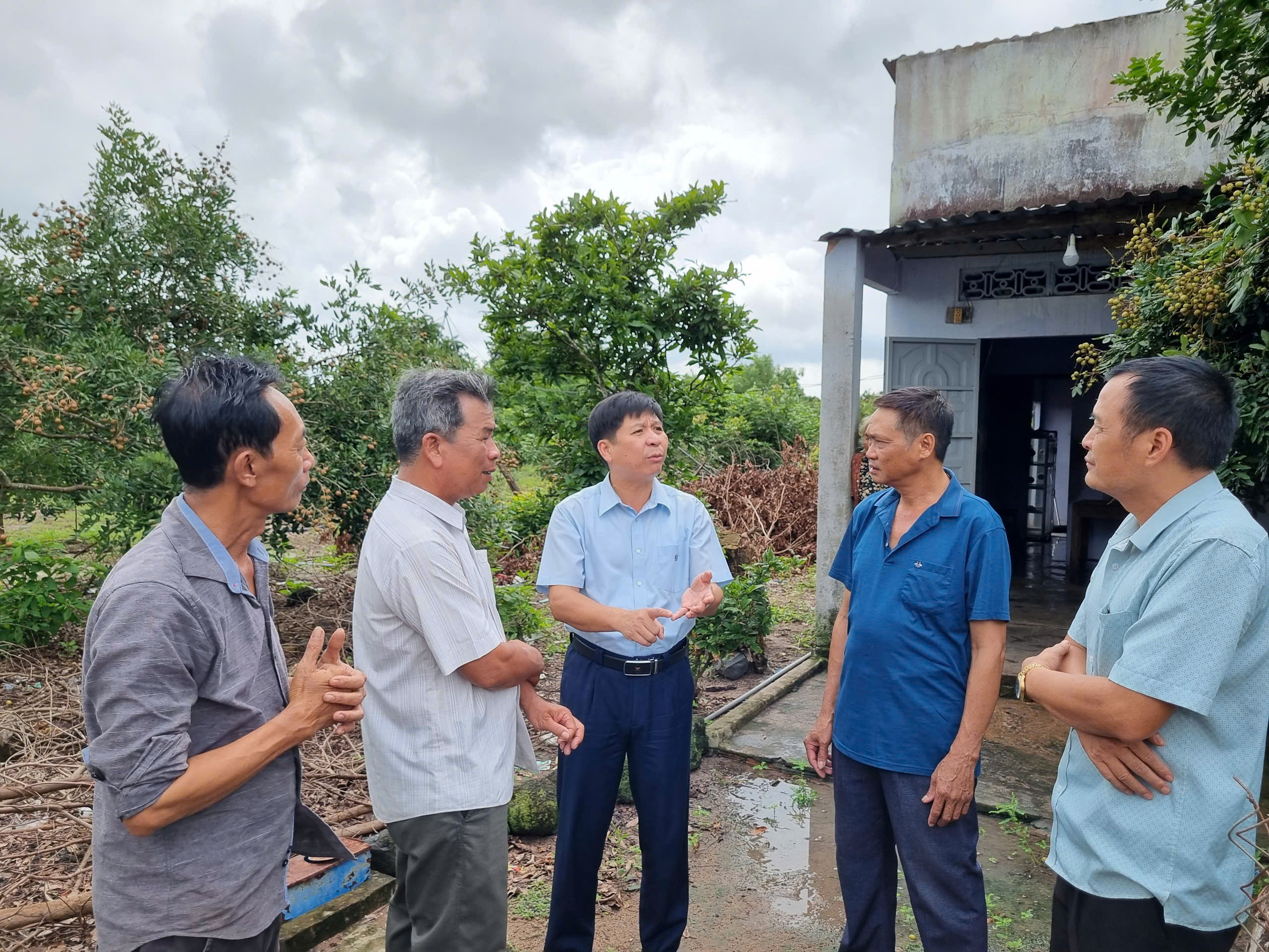 | Đoàn khảo sát nhà bà Nguyễn Thị Ngọc Lượm, xã Hòa Hội. |