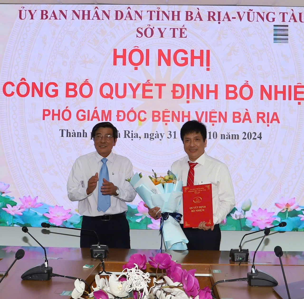 Chiều 31/10, Sở Y tế tổ chức hội nghị công bố, trao quyết định bổ nhiệm Phó Giám đốc Bệnh viện Bà Rịa và Bệnh viện Vũng Tàu.