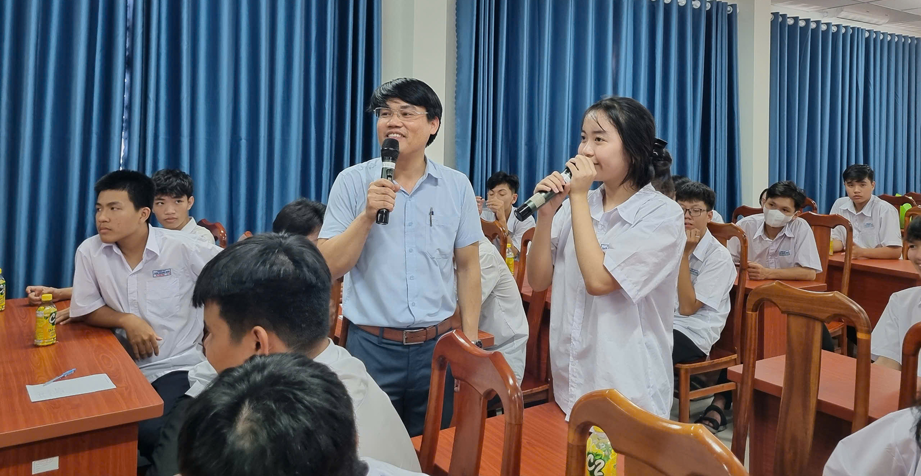 | Báo cáo viên và học sinh trao đổi kiến thức về giới, giới tính. |