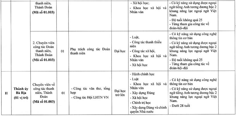 Thông báo tuyển dụng công chức, viên chức cơ quan Đảng, Mặt trận Tổ quốc và các tổ chức chính trị - xã hội tỉnh Bà Rịa - Vũng Tàu