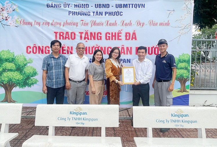 Ngày 13/12, Công ty TNHH Kingspan trao tặng 12 ghế đá (trị giá hơn 20 triệu đồng) cho UBND phường Tân Phước, TX.Phú Mỹ để lắp đặt vào khuôn viên khu công viên (phía trước trụ sở UBND phường).