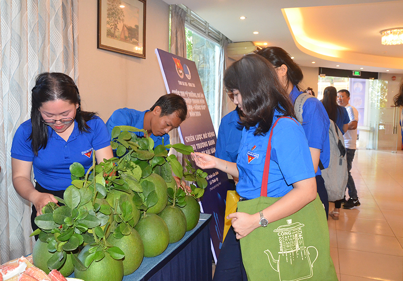 | Đoàn viên, thanh niên tham quan gian hàng bưởi da xanh của nhóm anh Nguyễn Vũ Linh tại cuộc thi khởi nghiệp do Hội LHTN Việt Nam tỉnh tổ chức ngày 22/11/2024. |