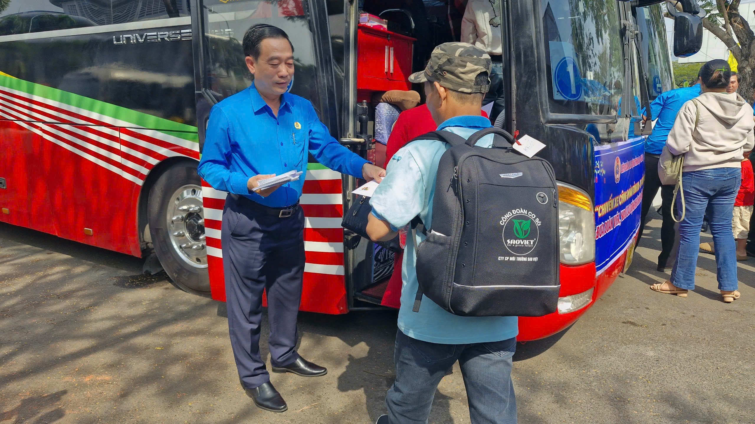 Các công đoàn cấp trên trực tiếp cơ sở cũng tổ chức 4 chuyến xe đưa gần 200 NLĐ về quê dịp Tết Nguyên đán Ất Tỵ 2025.