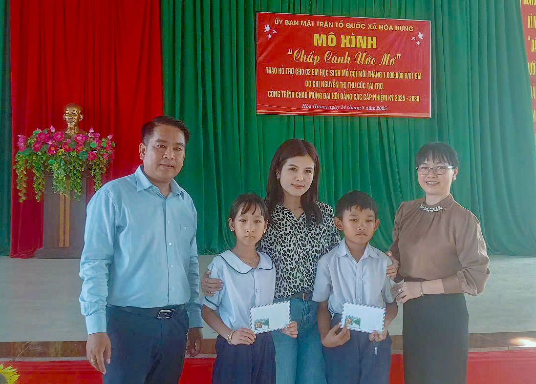 UBMTTQ Việt Nam xã Hòa Hưng đã vận động bà Nguyễn Thị Thu Cúc (TP.Phú Mỹ) hỗ trợ 1 triệu đồng/em/tháng, cho đến năm các em 18 tuổi.
