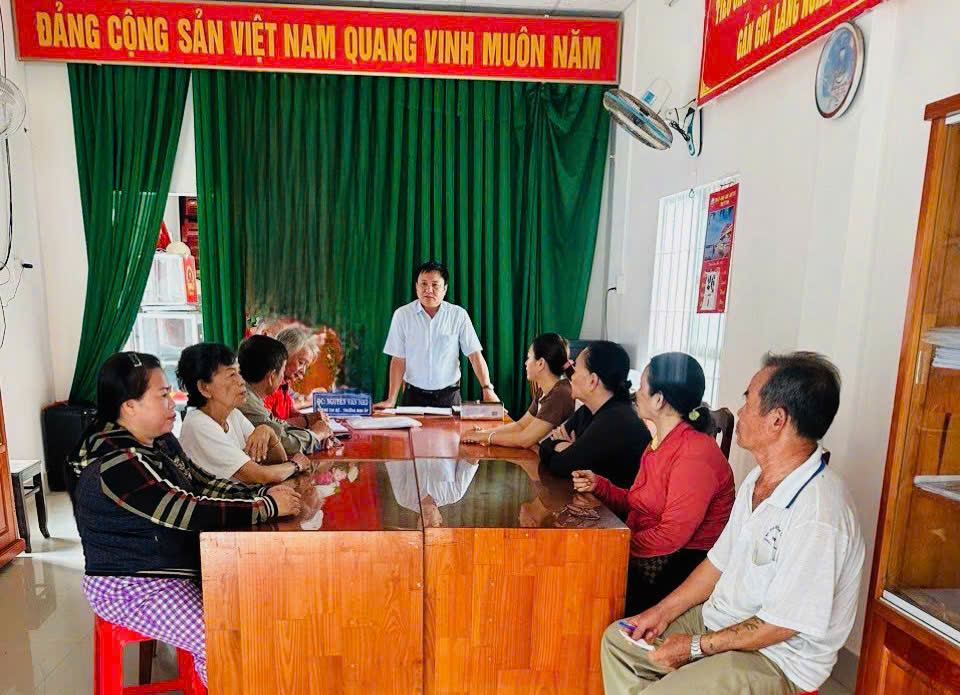 | Tổ hòa giải viên ấp Phước Hiệp, xã Phước Tỉnh, huyện Long Đất trao đổi nội dung hòa giải vụ việc hôn nhân gia đình của ấp. |