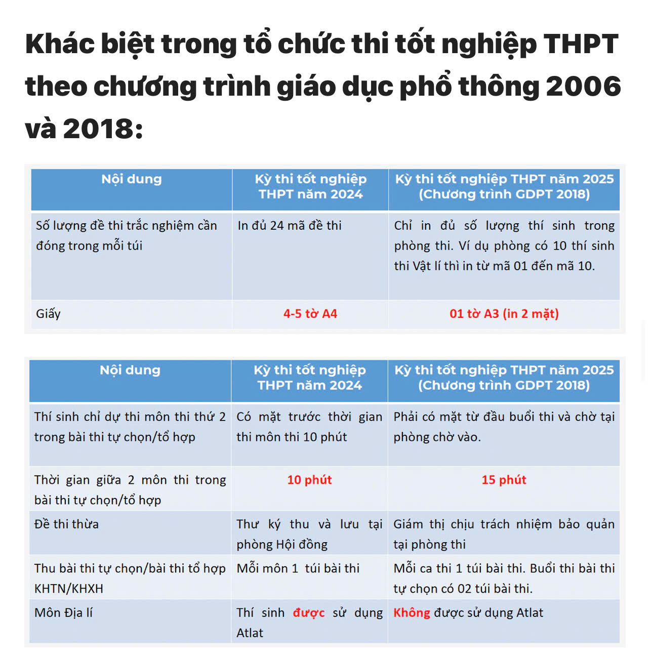 Đề thi cho thí sinh chương trình giáo dục phổ thông 2006 và 2018 khác nhau. Thí sinh học theo chương trình giáo dục 2006 được chọn thi theo chương trình 2006 hoặc 2018. Những thí sinh thi theo chương trình 2006 sẽ được xếp địa điểm thi riêng, được phép mang Atlat Địa lý vào phòng thi.